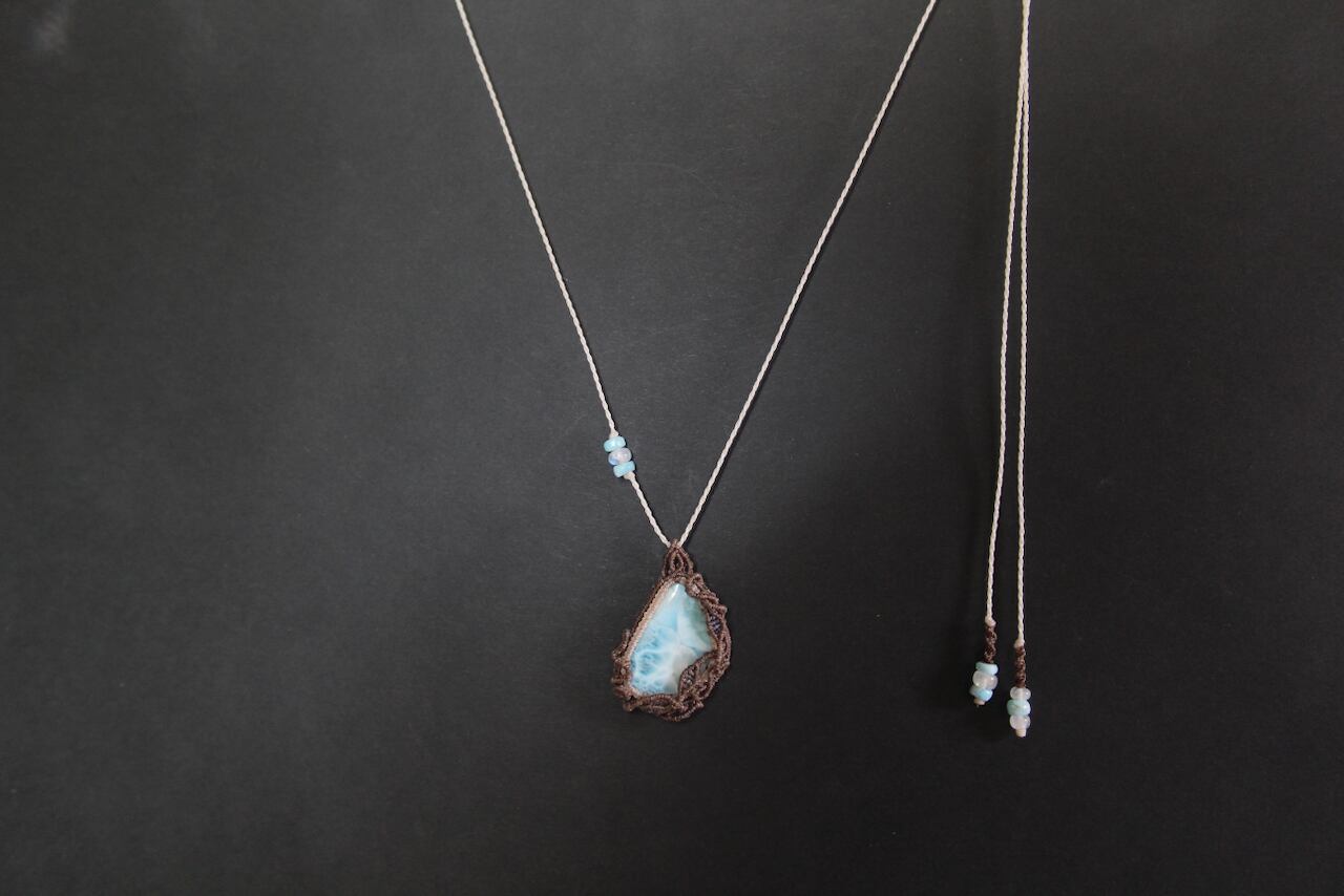 Larimar micro macrame design pendant