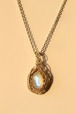 独特な形にシラーが出る小ぶりなレインボームーンストーンを、細いシルバー925のワイヤーでラッピングしながら固定して周りを装飾したペンダントトップ。