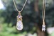 透明度の高い水晶の中に様々インクルージョン(内包物)を抱え込み、個性を放っているインクルージョンクォーツと、小ぶりながら色合いや透明度抜群で高品質のタンザナイトをポイントに合わせたペンダント。